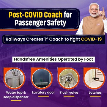 ভাইরাস যাতে কোনওভাবেই মানবশরীর স্পর্শ করতে না পারে, তা মাথায় রেখে নয়া নকশা বানানো হয়েছে। ট্রেনের হাতল তামায় মোড়া হয়েছে। ট্রেনের দরজার ছিটকিনিতেও তামার প্রলেপ দেওয়া হয়েছে। টুইটারে গোয়েল আরও জানিয়েছেন, প্লাজমা এয়ার পিউফিকেশন, টাইটেনিয়াম ডি-অক্সাইডের আস্তরণ দেওয়ার মতো ব্য়বস্থা নেওয়া হয়েছে। কাপুরথালায় রেলের কারখানায় এই কোচগুলি তৈরি করা হয়েছে। নয়া কোচে থাকছে ফুট অপারেটেড ওয়াটার ট্য়াপ। অর্থাত্, হাত নয়, পায়ের মাধ্য়মেই জল নেওয়া যাবে, সাবান ব্য়বহার করা যাবে। এমনকি, শৌচালয়ের দরজা, ফ্লাশের জন্য়ও পা ব্য়বহার করতে হবে। হাত নয়, পা দিয়ে ফ্লাশ করতে হবে।