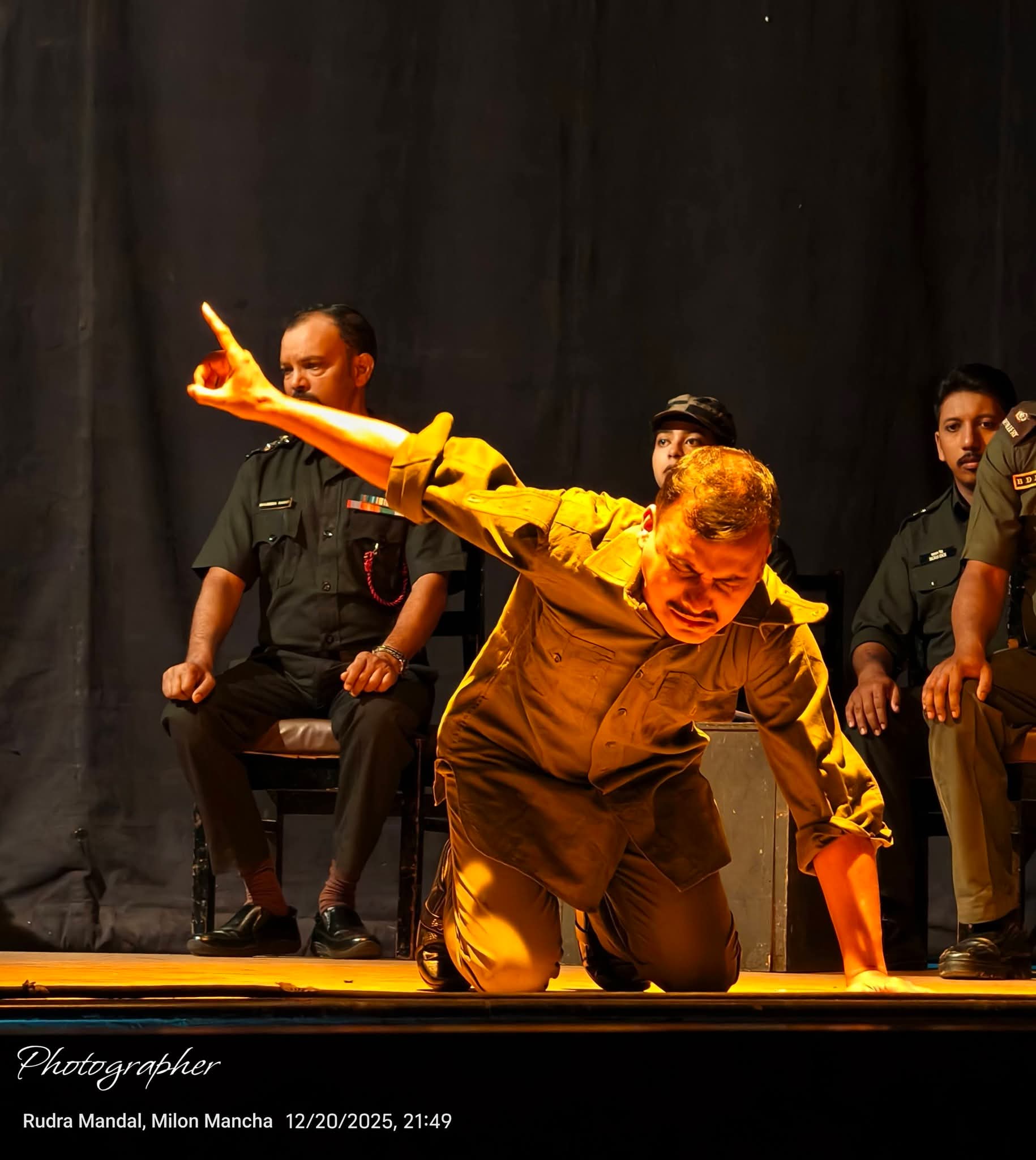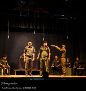 সুপরিচিত নাট্য ব্যক্তিত্ব শান্তনু পালের নির্দেশনায় এই নাটকের কুশীলবরা হলেন – পল্লব ভট্টাচার্য, সায়ন্তনী পাল (মিঠি), গৌরব রবিদাস, সৌম্য ( আকাশ) দাস, সুব্রত রায়, শিবম দাস, অনিন্দ্য সেন, দেবাশিস ভট্টাচার্য, ওঙ্কার ঘ্যাগ (মুম্বাই), নভনীল দাস, হাসানুর সরকার, তুষার বণিক এবং সংহিতা চানু। শান্তনু পাল এই নাটক শুধু পরিচালনা করলেন না, তিনি দাপটের সঙ্গে এই নাটকের প্রধান চরিত্রে অভিনয় করলেন। মুম্বাইয়ে শিলচরের কোনও নাট্যদলের এটিই প্রথম অভিনয়। আবির্ভাবেই তাঁরা দর্শকদের হৃদয় জয় করে নিয়েছেন । প্রমাণ করলেন, শিলচর কতটা সংস্কৃতি রসে সমৃদ্ধ। আমরা আবার তাঁদের অন্যান্য প্রযোজনা দেখতে চাই – দেখতে চাই তাঁদের আর এক প্রযোজনা ‘মনসামঙ্গল’।”