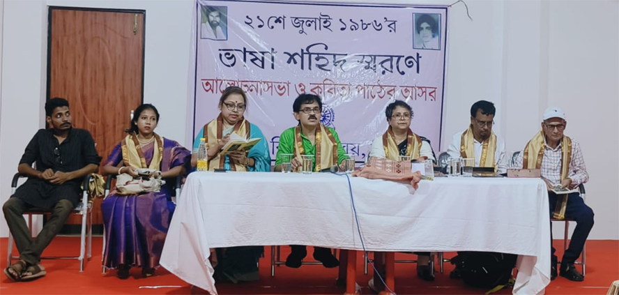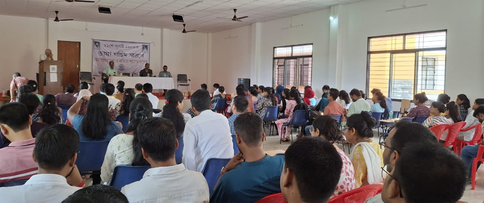 এ দিন শহিদ দিবসের মূল অনুষ্ঠান আয়োজিত হয় বিশ্ববিদ্যালয়ের ‘স্বপ্না দেবী স্মৃতি সদনে’। অনুষ্ঠানের প্রথম পর্বে আয়োজিত হয় আলোচনাসভা। এতে পৌরোহিত্য করেন বিশিষ্ট ভাষাবিজ্ঞানী অধ্যাপক অজিত কুমার বৈশ্য। স্বাগত বক্তব্য রাখেন বাংলা বিভাগের প্রধান অধ্যাপক দেবাশিস ভট্টাচার্য। তিনি বলেন, বরাক উপত্যকার বিভিন্ন পর্যায়ে সংগঠিত ভাষা আন্দোলন ছিল ভারতবর্ষের বহুভাষিক ও বহুসাংস্কৃতিক চরিত্রের ওপর আঘাত প্রতিরোধের সংগ্রাম। আজ বিশ্বায়নের যুগে মানুষের চাহিদার বদলের সঙ্গে সঙ্গে সমস্ত মাতৃভাষাই কম বেশি আক্রান্ত। আর এরই সূত্রে অপ্রাসঙ্গিক হয়ে পড়ছে ভাষা সংস্কৃতির উপর আক্রমণ প্রতিরোধের চেতনাও। এই পটভূমিতে তাই ভাষা সংগ্রামের ইতিহাস ও উত্তরাধিকারের প্রশ্নকে আজকের বাস্তবে দাঁড়িয়ে পুনঃপাঠের প্রয়োজন রয়েছে।