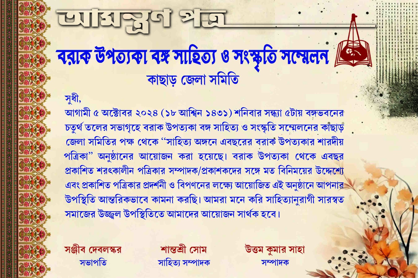 বরাকের শারদ পত্রিকার প্রদর্শনী ও বিপণনে বরাক বঙ্গের অনুষ্ঠান শনিবার