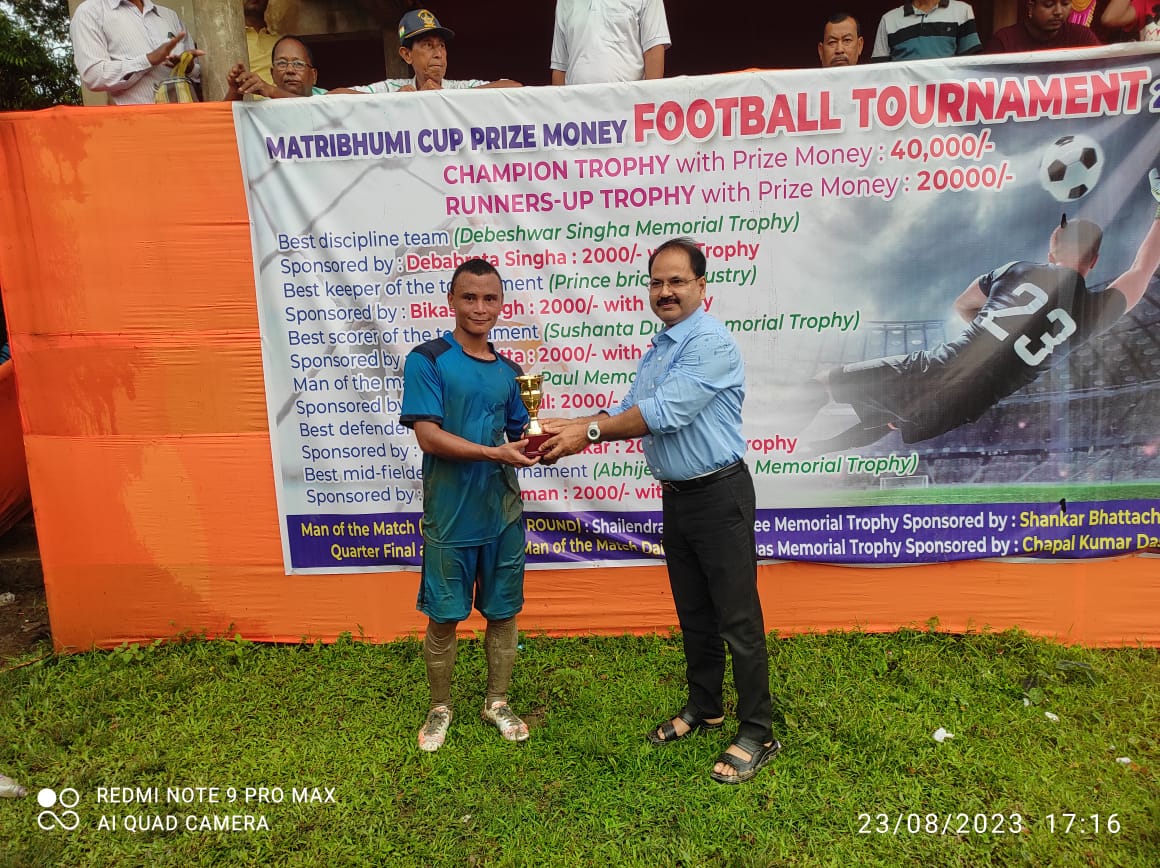 উল্লেখ্য, এদিনের খেলা পরিচালনা করেন কমরুজ্জামান লস্কর । সহযোগী ছিলেন প্রবীণ বর্মন। চতুর্থ রেফারি ছিলেন এলমিন খাসিয়া । এদিনের ম্যাচে সেরা খেলোয়াড় হিসাবে নির্বাচিত হন কাই। তার হাতে ম্যান অব দ্য ম্যাচ পুরস্কার হিসাবে শৈলেন্দ্র ভট্টাচার্য মেমোরিয়াল ট্রফি তুলে দেন বিশিষ্ট অতিথি ধলাই খণ্ড প্রাথমিক স্বাস্থ্যকেন্দ্রের এসডিএমও ডাঃ দিলীপ কুমার পাল। বৃহস্পতিবার দ্বিতীয় রাউণ্ডের অষ্টম খেলায় কালাখাল এফসি এবং কর্কট এফসি পরস্পরের মোকাবিলা করবে বলে আয়োজক মাতৃভূমি-র ক্রীড়া সম্পাদক পিংকু বর্মণ জানিয়েছেন।