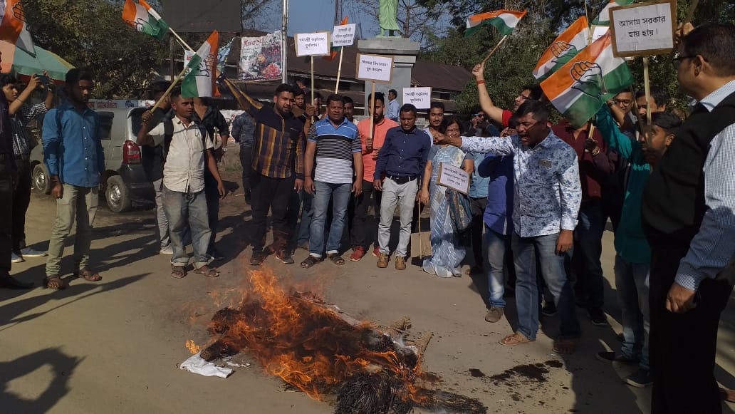 Over there, the effigies of Chief Minister Sarbananda Sonowal, Finance Minister Himanta Biswa Sarma and Excise Minister Parimal Suklabaidya were burnt. Slogans were raised against the ‘inefficient administration’ and ‘lapse of administration’ of the present state government.
