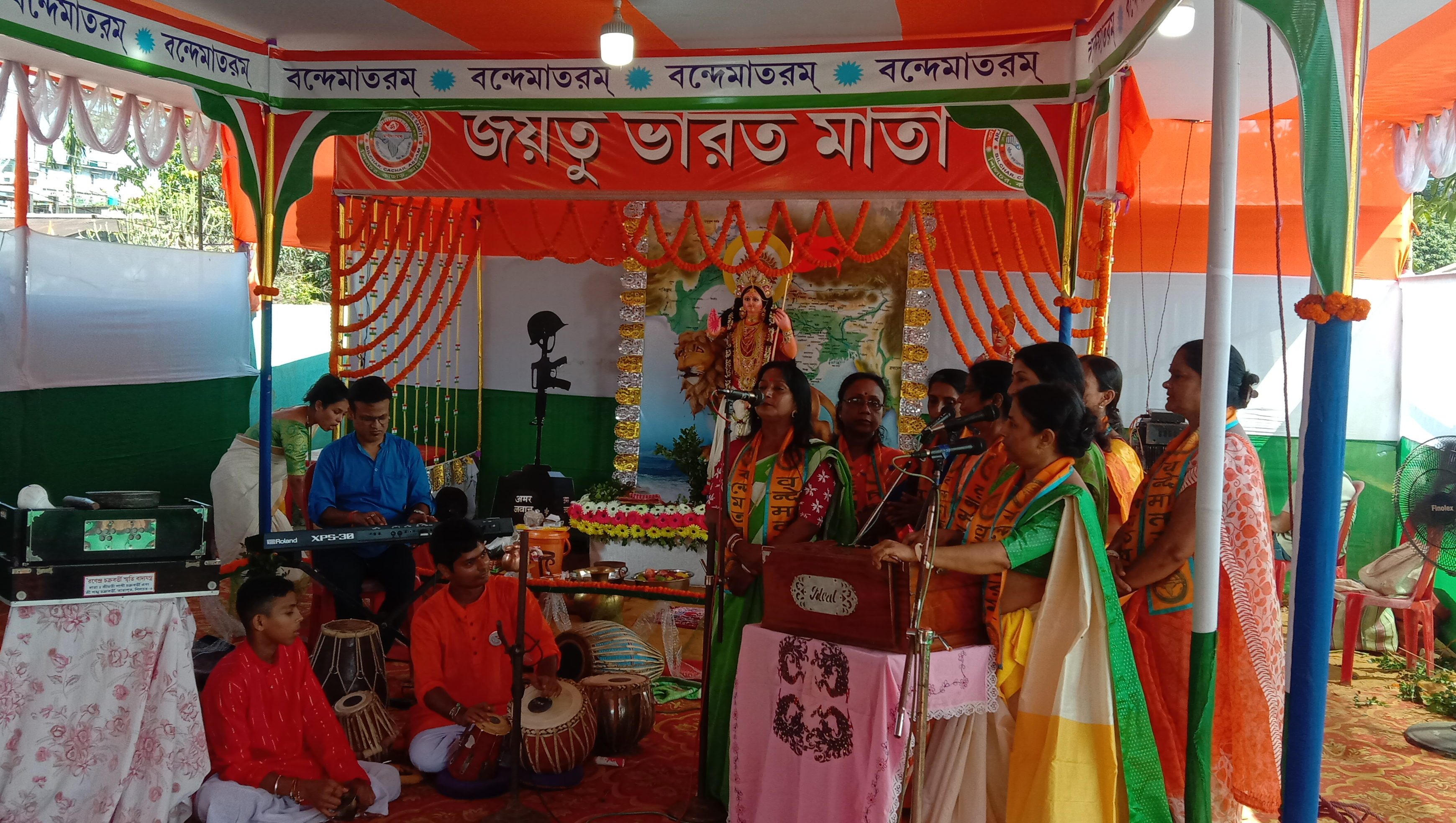 ওয়েটুবরাক, ১৫ আগস্ট : স্বাধীনতার ৭৫ বর্ষ পূর্তিতে উদয়াস্ত বন্দেমাতরম কীর্তন করল শিলচরের আর্য সংস্কৃতি বোধনী সমিতি৷ সুর পরিবর্তন করে শিল্পীরা শুধু ‘বন্দেমাতরম’ ছড়িয়ে দিলেন৷ মূর্তি গড়ে হলো ভারতমাতার পূজাও৷ দুপুরে মহাপ্রসাদ বিতরণ৷ খিচুড়ি, সবজি, আলু ভাজা৷