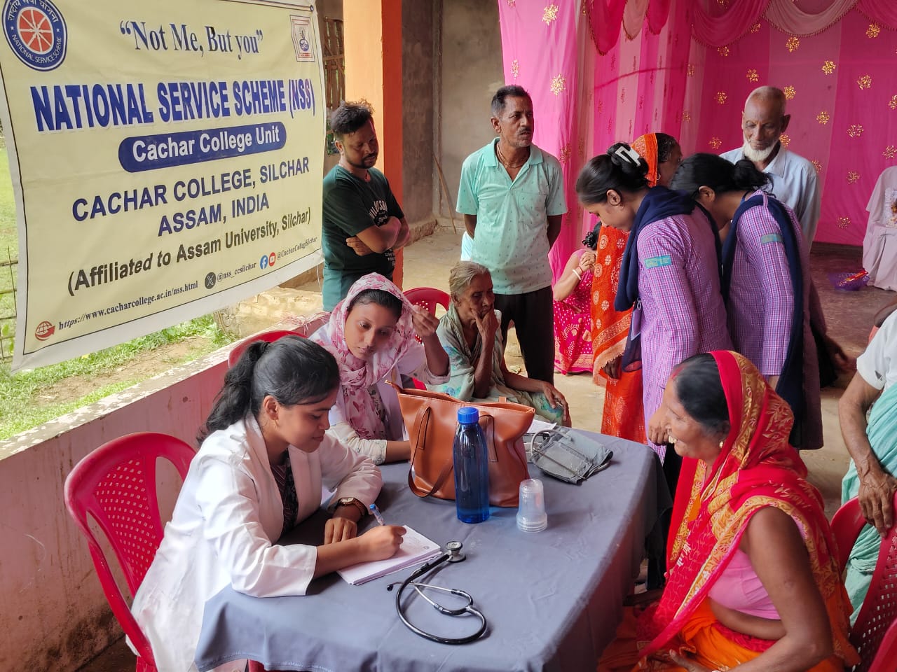 এনএসএস দিবসে মাছুঘাটে কাছাড় কলেজের স্বাস্থ্য শিবির ও বস্ত্রদান কর্মসূচি
