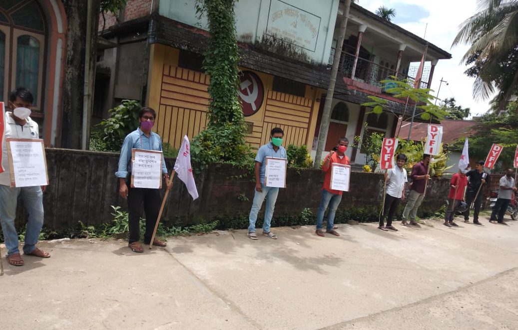 দ্রুত স্বাস্থ্য পরিকাঠামো উন্নত করার দাবিতে শিলচরে ডিওয়াইএফআইর বিক্ষোভ
