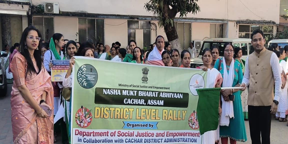 ওয়ে টু বরাক, ১ ডিসেম্বর : মিনিস্ট্রি অব সোশ্যাল জাস্টিস অ্যান্ড এমপাওয়ারমেন্ট-এর উদ্যোগে কাছাড় জেলা প্রশাসন ও জেলা সমাজকল্যাণ বিভাগের ব্যবস্থাপনায় শনিবার কাছাড় জেলায় নেশামুক্ত ভারত অভিযান কর্মসূচির অঙ্গ হিসেবে জেলাস্তরে সচেতনতা বৃদ্ধির জন্য এক র্যালির আয়োজন করা হয়।