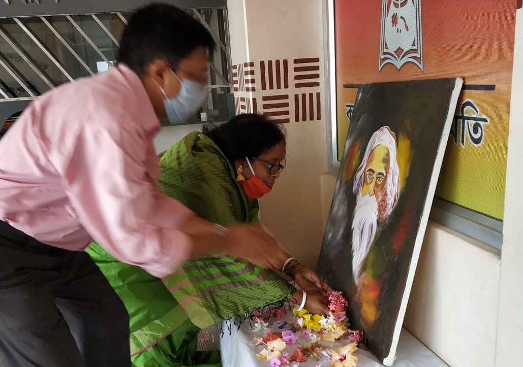 ৯ মে: করোনা ভাইরাস কাছাড়েও মারাত্মক চেহারা নিচ্ছে৷ এই পরিস্থিতিতে সতর্কতামূলক ব্যবস্থা হিসাবে সরকার সভা, অনুষ্ঠান ইত্যাদির ওপর নিষেধাজ্ঞা জারি করেছে৷ বরাক উপত্যকা বঙ্গসাহিত্য ও সংস্কৃতি সম্মেলনের শিলচর শহর আঞ্চলিক সমিতি তাই এককভাবে কবিপ্রণামের আহ্বান জানিয়েছিল৷ শুক্রবার সকালে কবির প্রতিকৃতি বঙ্গভবন প্রাঙ্গণে ফুলে ফুলে সাজিয়ে রাখা হয়৷ বিভিন্ন সময়ে গিয়ে সদস্য-কর্মকর্তারা গুরুদেবের উদ্দেশে শ্রদ্ধা নিবেদন করেন৷ তাদের মধ্যে রয়েছেন কেন্দ্রীয় সমিতির সাধারণ সম্পাদক গৌতমপ্রসাদ দত্ত, প্রদীপ আচার্য, তাপসী দত্ত, অমিতাভ পাল, উত্তমকুমার সাহা প্রমুখ৷ তাপসীদেবী রবিঠাকুরের পায়ে ফুল দিয়ে নিজে থেকেই গেয়ে ওঠেন৷ সঙ্গীতাঞ্জলির জন্য যে শ্রোতার প্রয়োজন পড়ে না৷