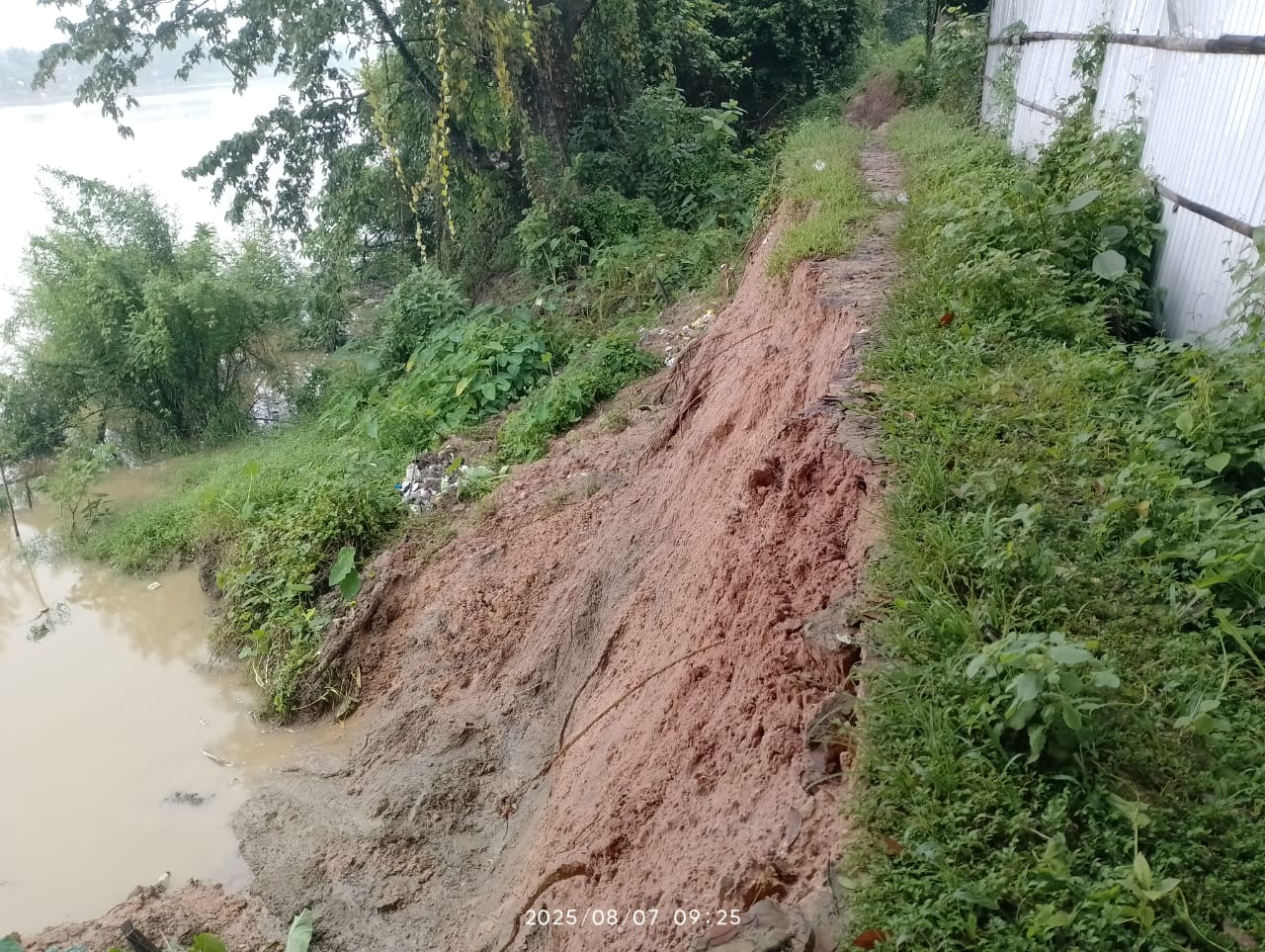 ওয়েটুবরাক, ৮ আগস্ট: শিলচর মালুগ্রামের ঐতিহ্যবাহী বি সি গুপ্তের বাড়ির পিছন দিকে বরাকের পাড় ভাঙন শুরু হয়েছে। অবিলম্বে তা রোধ করা না হলে তা ভয়াবহ চেহারা নেবে, এমনকী নদীর গতিপথ পরিবর্তিত হয়ে যেতে পারে বলে আশঙ্কা করা হচ্ছে। প্রগতিশীল নাগরিক সমন্বয় মঞ্চের তরফে এক প্রতিনিধি দল বৃহস্পতিবার সকালে জলসম্পদ বিভাগের সহকারী ইঞ্জিনিয়ারকে নিয়ে সরেজমিনে ওই এলাকা পরিদর্শন করেন।