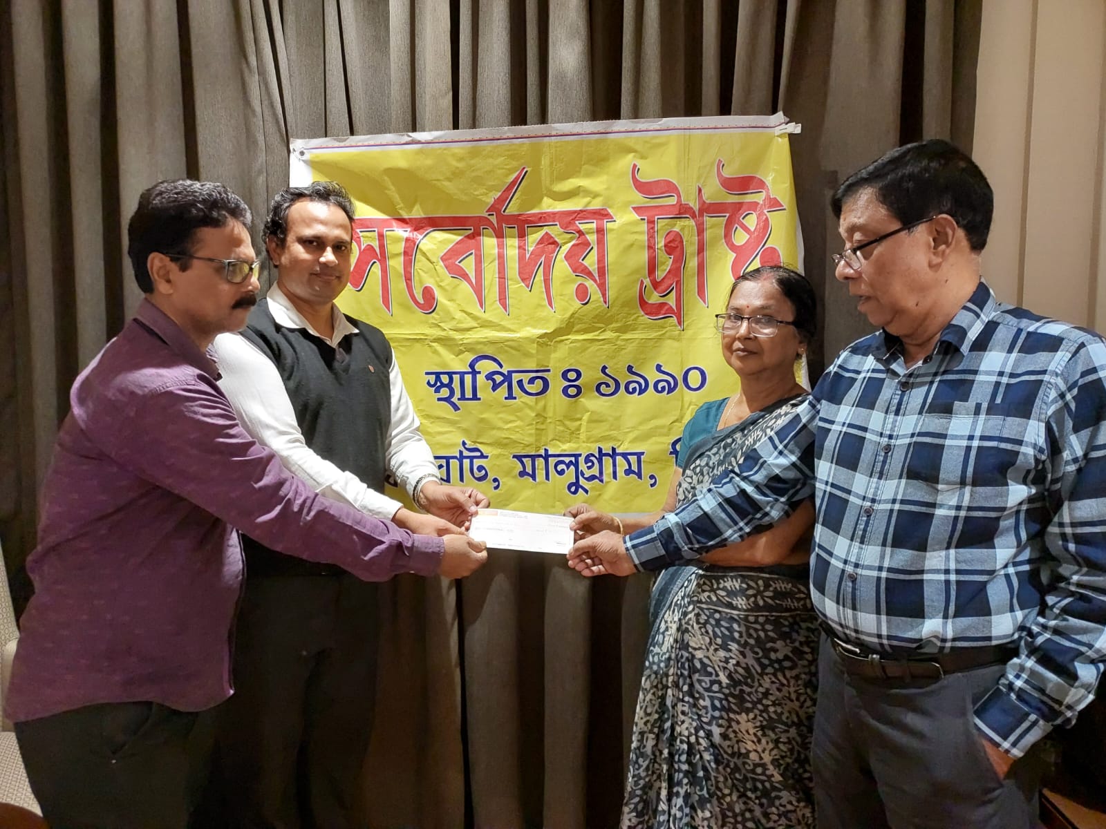 সর্বোদয় ট্রাস্টে ৫০ হাজার দিলেন কলকাতা প্রবাসী নন্দী দম্পতি