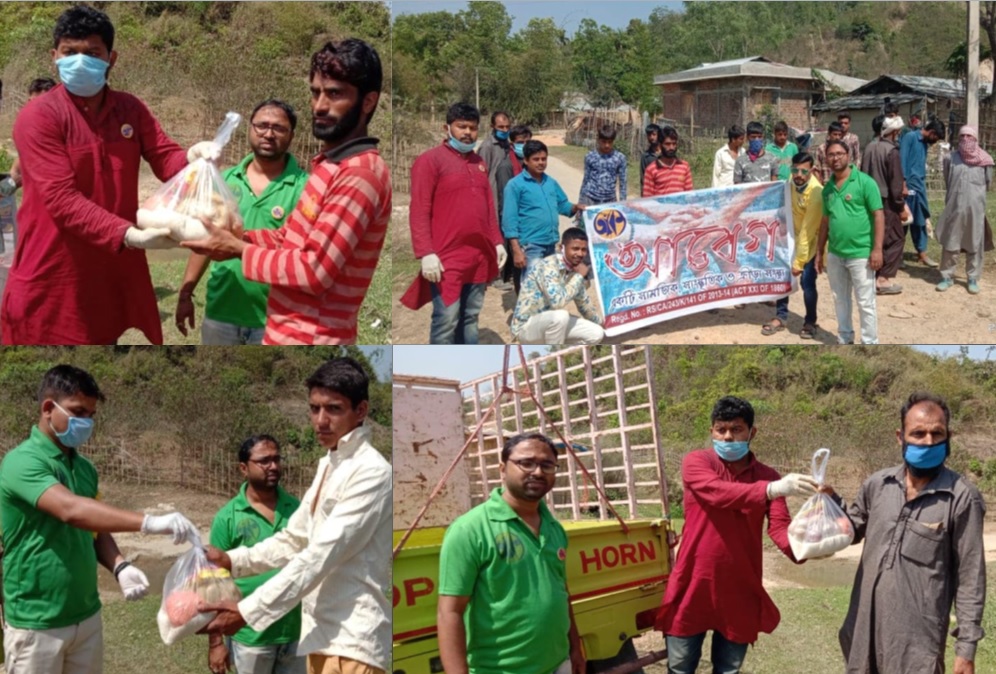 On Monday, they distributed rice, pulses, potato, onion, soyabean and salt among 29 families from Jammu Hatichera. Aabeg thanked Amit Deb Roy and also the Circle Officer Mr. Pathak from the district administration for their kind cooperation. Team Aabeg also made an appeal to help them and donate so that they can use the money for helping the needy.