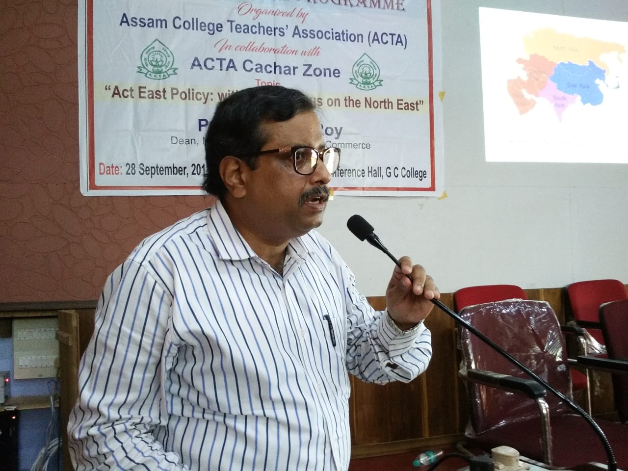 September 29: The objective of ”Act East Policy” is to promote economic cooperation, cultural ties and develop strategic relationship with countries in the Asia-Pacific region through continuous engagement at bilateral, regional and multilateral levels thereby providing enhanced connectivity to the States of North Eastern Region including Arunachal Pradesh with other countries in our neighbourhood. The North East of India has been a priority in our Act East Policy (AEP). This was the crux of the speech delivered by Prof. Niranjan Roy, Dean of MG School of Economics & Commerce, Assam University during the Annual Lecture programme organized by Assam College Teachers’ Association (ACTA) on Friday.