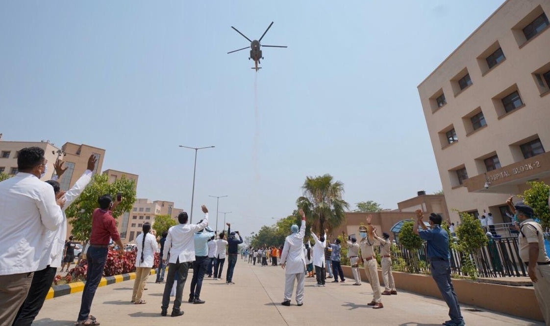 এদিন সকাল ১০টায় প্রথম মেডিক্যাল চত্বরে আসে হেলিকপ্টার। এখানে আকাশ থেকে ফুল ছড়িয়ে সাড়ে ১০টায় যায় এমএমসি হাসপাতালে। এর পাশাপাশি তাদের সম্মানে ব্যান্ডও বাজানো হয়েছে। সেখান থেকে হেলিকপ্টার জনতা ভবনে গিয়েও পুষ্পবৃষ্টি করে। ভারতীয় বিমান বাহিনীর এই কর্মসূচি শুধু আসামেই নয়, সারা দেশজুড়েই একইভাবে করোনা যোদ্ধাদের সম্মান জানানো হয়।