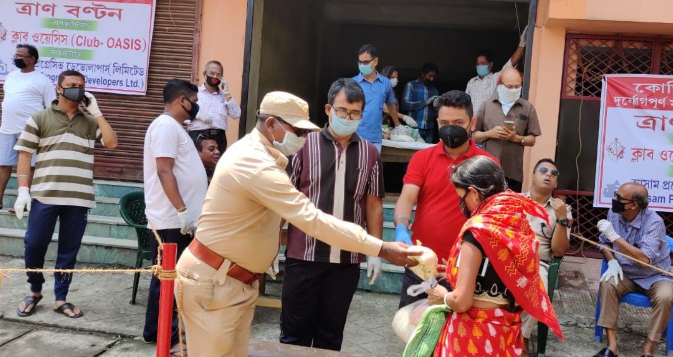 April 19: The outbreak of coronavirus has brought life to a standstill. The 21 days lockdown was further increased by 19 days which will end on 3 May, 2020. This has rendered many people jobless especially the dily wage earners are without work and money to sustain their family. Though governmment is helping but that is not enough. Many individuals, NGOs, organisations, business establishments have now come forward to help the poor and needy. On Sunday morning, renowned construction company Assam Progressive Developers Limited (APDL) in collaboration with Club Oasis distributed essential food commodities among the disadvantaged class.
