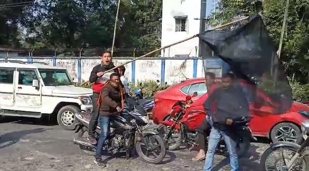 Assam BJP President Ranjit Dass shown black flag by AASU in Chabuaচাবুয়ায় প্রদেশ বিজেপি সভাপতিকে কালো পতাকা দেখাল আসু