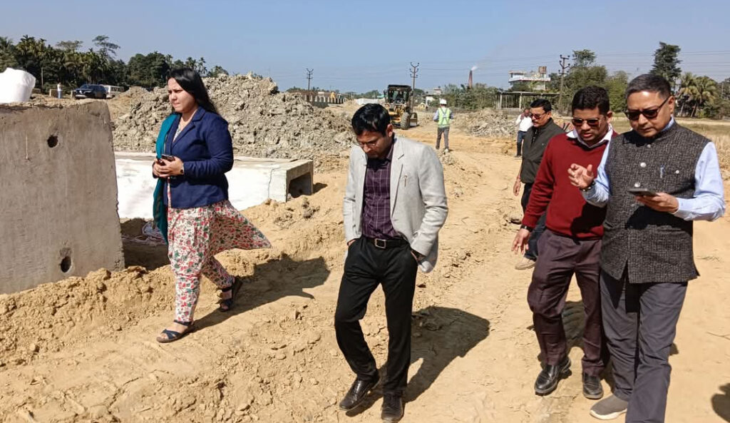 Way2barak, January 18 : In a significant move to ensure the timely execution of the ambitious Bharatmala Pariyojna, the District Commissioner of Cachar, Mridul Yadav, conducted an on-site inspection on Friday. Accompanied by Maria Tanim, Circle Officer of Sonai Revenue Circle, the Deputy General Manager of NHIDCL, and other officials, the team assessed the progress of the project.