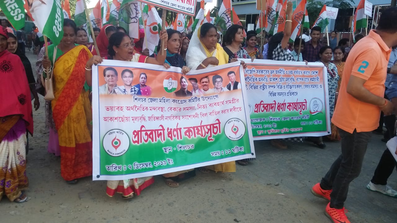 ৭ ডিসেম্বরঃ নাগরিকত্ব সংশোধনী বিল নিয়ে যখন গোটা রাজ্যে চর্চা চলছে, জেলায় জেলায় কংগ্রেস এর বিরুদ্ধে আন্দোলনমুখর, তখন শিলচরে মিছিল, বিক্ষোভ, ধরনা সবই হয়েছে, কিন্তু সে সব ক্যাব-কেন্দ্রিক নয়। ব্যানার, লিফলেটের কোথাও ক্যাবের উল্লেখ নেই। সেখানে বলা হয়েছে, বিজেপি সরকারের ভুল অর্থনীতি ও চরম ব্যর্থতার দরুন দেশে যে অর্থনৈতিক অবনতি, আকাশছোঁয়া মূল্যবৃদ্ধি, ব্যাপকহারে কর্মচারী ছাঁটাই, বিবিন্ন রাষ্ট্রীয় সম্পত্তি বিক্রি ও ব্যক্তিগতকরণ বেকারি ও বিভিন্ন সমস্যার বিরুদ্ধে প্রতিবাদী ধর্না কর্মসূচি।