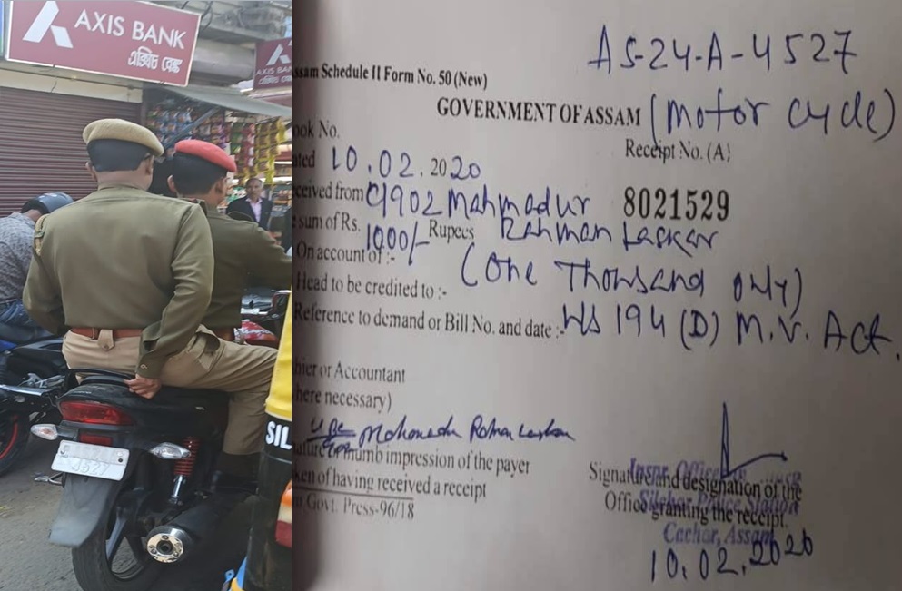 Cops without helmet fined after social media post by Silchar journalistহেলমেট নেই, সোশ্যাল মিডিয়ার চাপে পুলিশকে জরিমানা