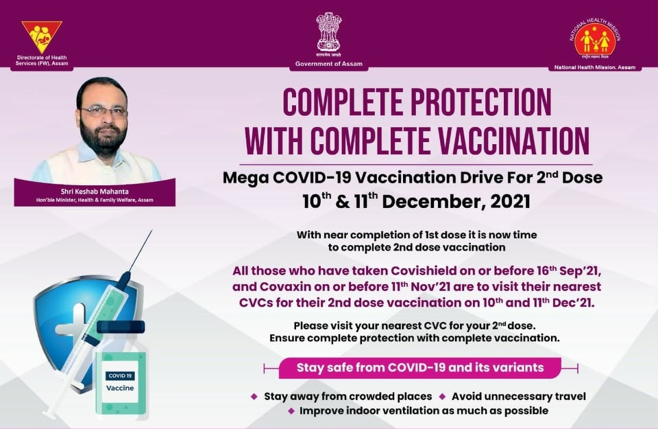 - Sanjivani (104) office, opposite Urban PHC, Trunk Road: Both 1st dose (50) and 2nd dose (50 shots) will be given on the basis of on-spot registration on 10 & 11 December.