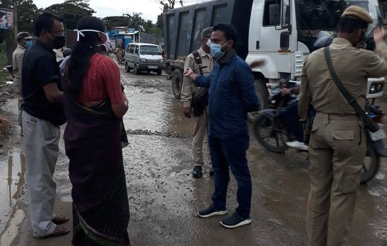 Sept. 29: Potholes on the streets of Silchar is a very common sight. Many roads within the municipal areas of the town are also full of potholes. On Monday, Keerthi Jalli Deputy Commissioner, Cachar went in person at National Highway, Silchar to inspect the road full of potholes. DC Jalli instructed the concerned officials to repair the potholes immediately. On getting instruction from the Deputy Commissioner, Contractor Upadhaya promised to start repair work at National Highway as soon as rains subside.