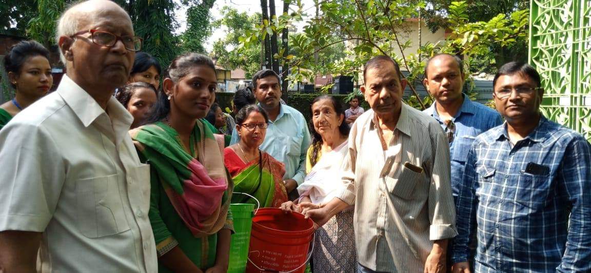 The Deputy Commissioner urged upon the Chetri family to make proper use of the buckets and also encourage others for the same. Around 300 buckets have been distributed across homes in the vicinity of ward number 24. Niharendra Narayan Tagore also expressed great hope towards the steps taken for making Silchar a clean town. All the volunteers under SSS were seen wearing uniform with SSS logo printed on them.