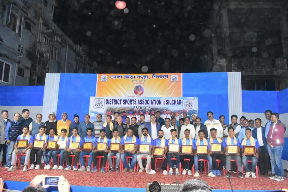 Feb. 13: District Sports Association, Silchar felicitated the fiery players of R.G. BARUAH (U-16) Inter District Cricket Tournament who were the runner-up this year. It needs mention here that team from Cachar district won the Under-16 finals in the year 2020. All the budding players were felicitated with an ‘uttoriyo’ and a memento. Present during the occasion were DSA President Babul Hore, General Secretary Bijendra Prasad Singh and others. Expressing his views, Bijendra Prasad Singh congratulated the entire team and expressed hope for a grand victory in 2022. He also thanked Niranjan Das and the entire cricket branch of DSA for the fantastic job.