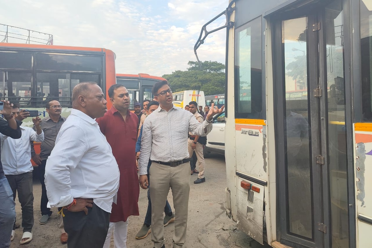 way2barak, Nov.2: On Wednesday, Minister of Transport, Excise & Fisheries, Government of Assam, Parimal Suklabaidya visited the ISBT Campus, Guwahati. He inspected the condition of dysfunctional buses, and assured that these would soon be allotted on lease for making them run on roads again. He also checked the boom barrier facility too, installed at the entry gate of ISBT.