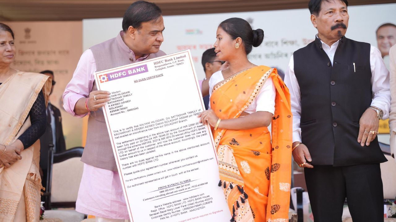 Sarma handed over ‘no due certificates’ to beneficiaries under the Assam Microfinance Incentive and Relief Scheme, Direct Benefit Transfers (DBT) to those affected by the 2024 floods, and seed capital to self-help groups under the Pradhan Mantri Formalisation of Micro Food Processing Enterprises (PMFME) scheme.
