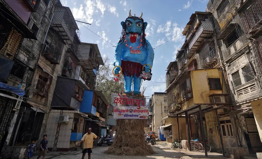 Holika Dahan is the most significant ritual which is conducted a day prior to Holi and this time people in Worli area have put up an effigy based on the theme of coronavirus with ‘Coronasur’ (corona-demon) written on it. The Holi festival marks the victory of good over evil and heralds the onset of spring in the Indian subcontinent.