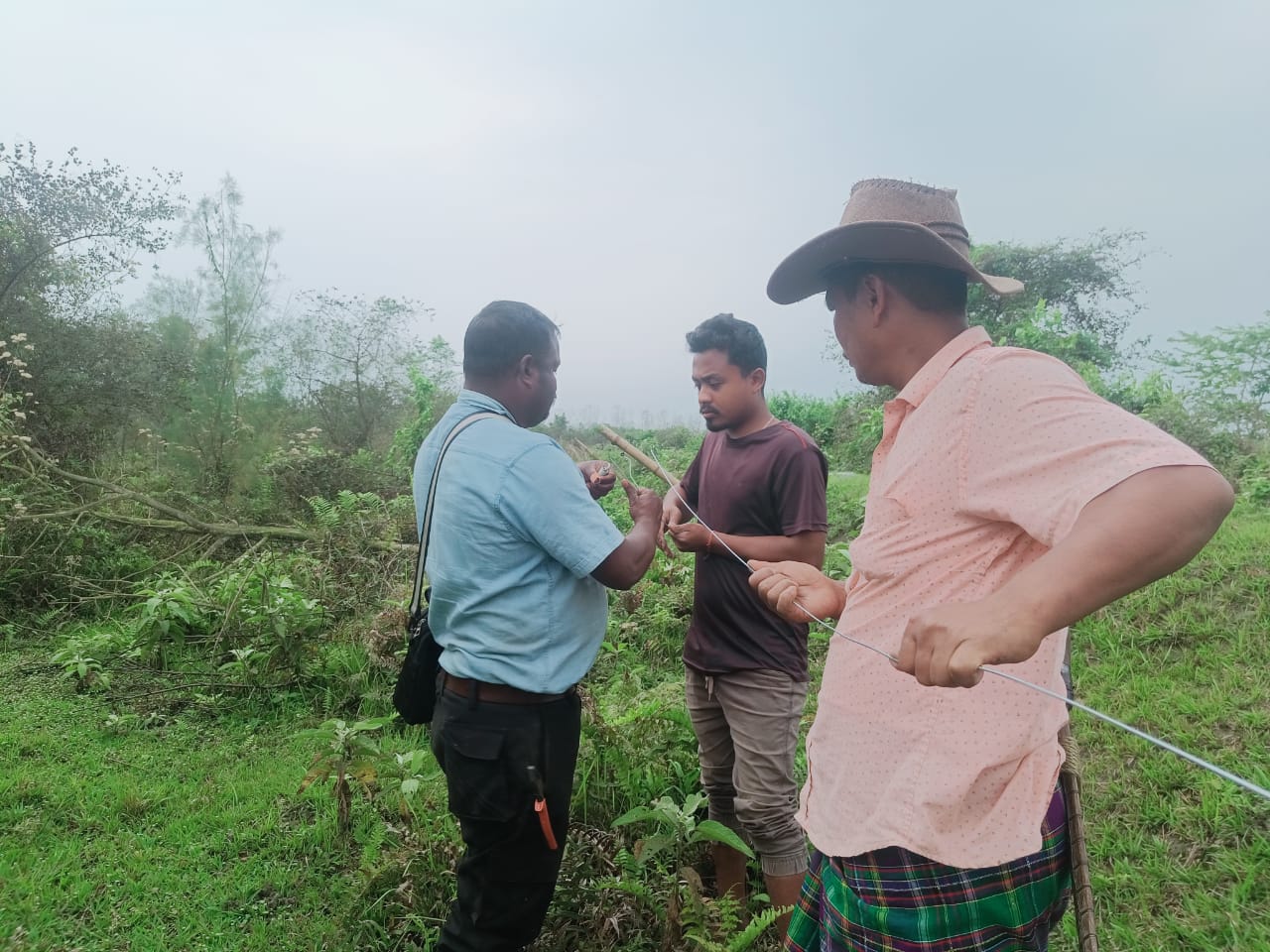 After the training, the local community members were involved in installing the 2.3 km -long solar fence to protect their vegetable fields with technical guidance and supervision of the Aaranyak team. The installation work was completed on April 5 last.