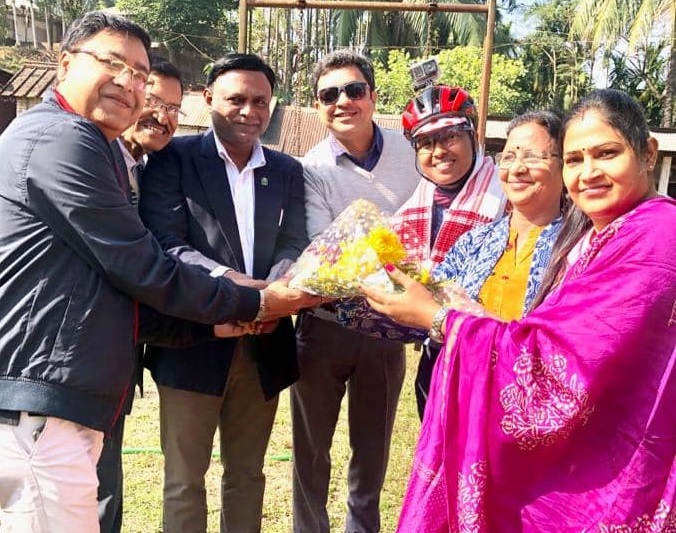 On Sunday, Jyothi Rongala was cycling through Badarpurghat. She took shelter at Tusnial’s residence while returning back from Tripura after covering Mizoram. She was proceeding towards Meghalaya. It was there that the members of Lions Club of Badarpur Greater and Valley Strong Cement felicitated Jyothi.