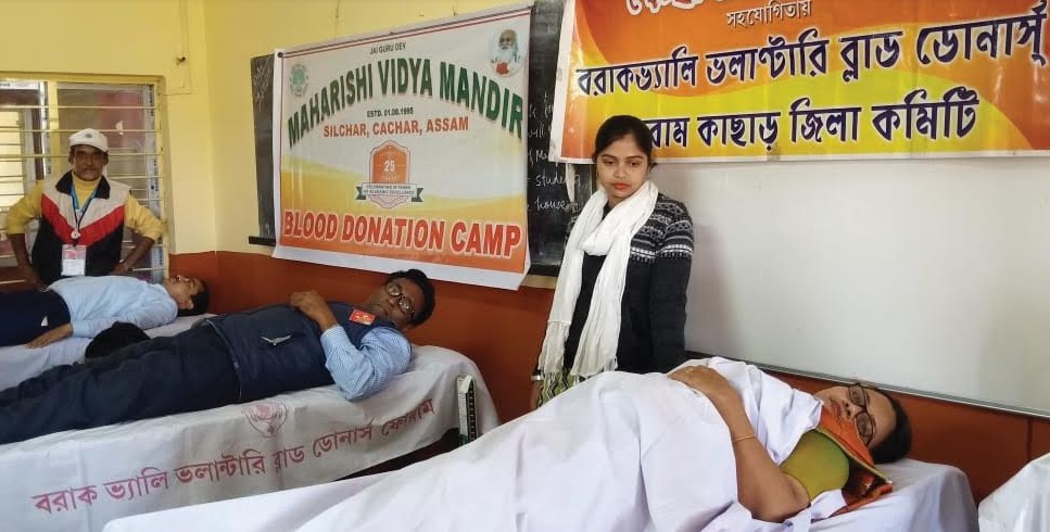 January 13: To commemorate its Silver Jubilee year, Maharishi Vidya Mandir, Silchar organised a blood donation camp on Monday. The blood donation camp was inaugurated by lighting the lamp by Samita Dutta, Principal of the School along with Ashu Paul, Working President of the Central Committee of Barak Valley Voluntary Blood Donors Forum (BVVBDF) along with the Working President of Cachar District Committee of BVVBDF.