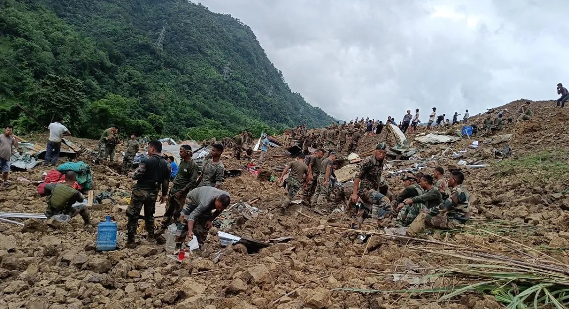 Noney Deputy Commissioner Haulianlal Guite said the landslide occurred at the Tupul Yard Railway construction site, which is close to the Makhuam area. Large-scale rescue operations were launched by the army, Assam Rifles, Manipur Police, and residents. The landslide at the Tupul yard railway construction site, which is close to the Makhuam area, caused the event to happen.