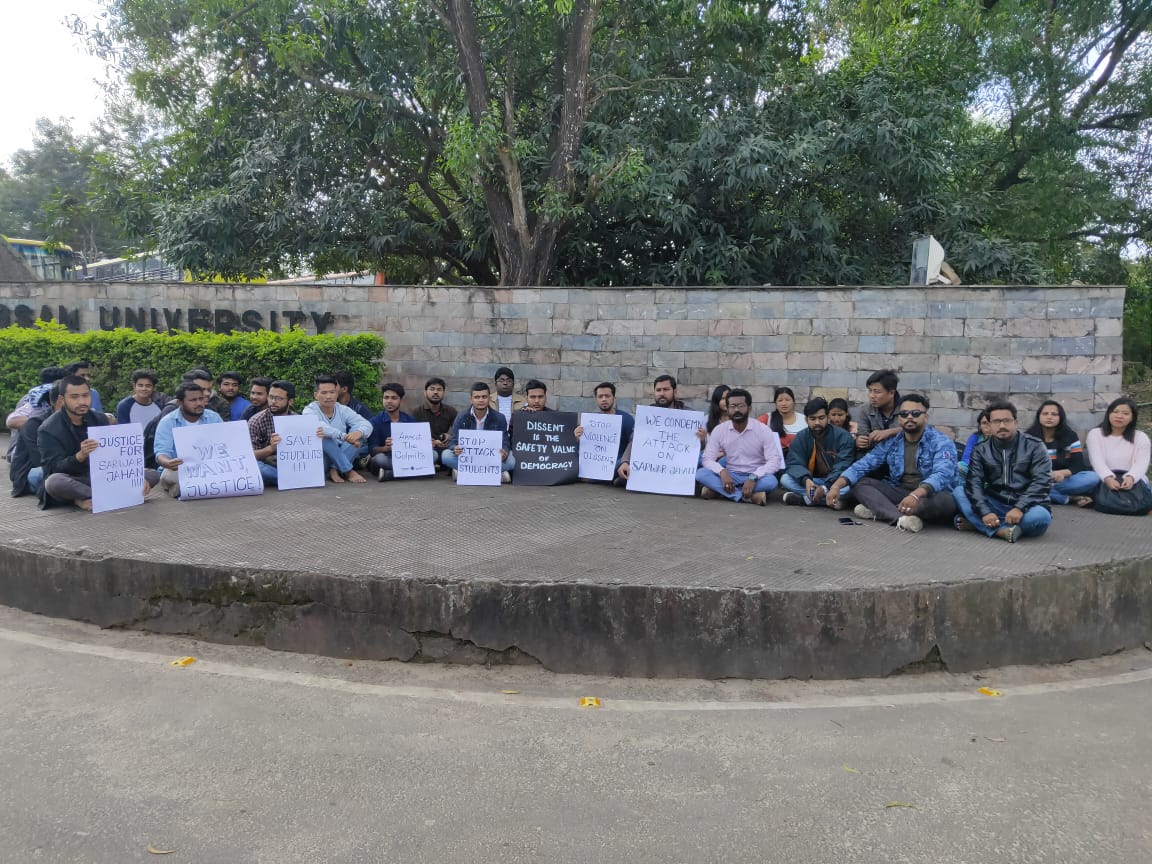 Miscreants beat student, protest held near Assam University gateছাত্রের ওপর হামলা, বিশ্ববিদ্যালয় গেটে বিক্ষোভ