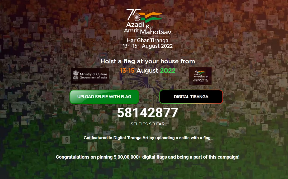 More than 5 crore Tiranga selfies uploaded on the Har Ghar Tiranga website