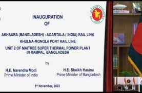 Prime Minister Narendra Modi and his Bangladesh counterpart Sheikh Hasina on Wednesday virtually inaugurated the Agartala-Akhaura railway project along with 1,320 MW generation capacity Maitree Super Thermal Power project at Rampal in Bangladesh’s Khulna division, and the 86.87 km Khulna-Mongla port rail line project.
