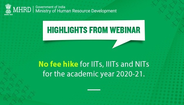 No fee hike will be introduced for IITs, IIITs, and NITs for the academic year 2020-21