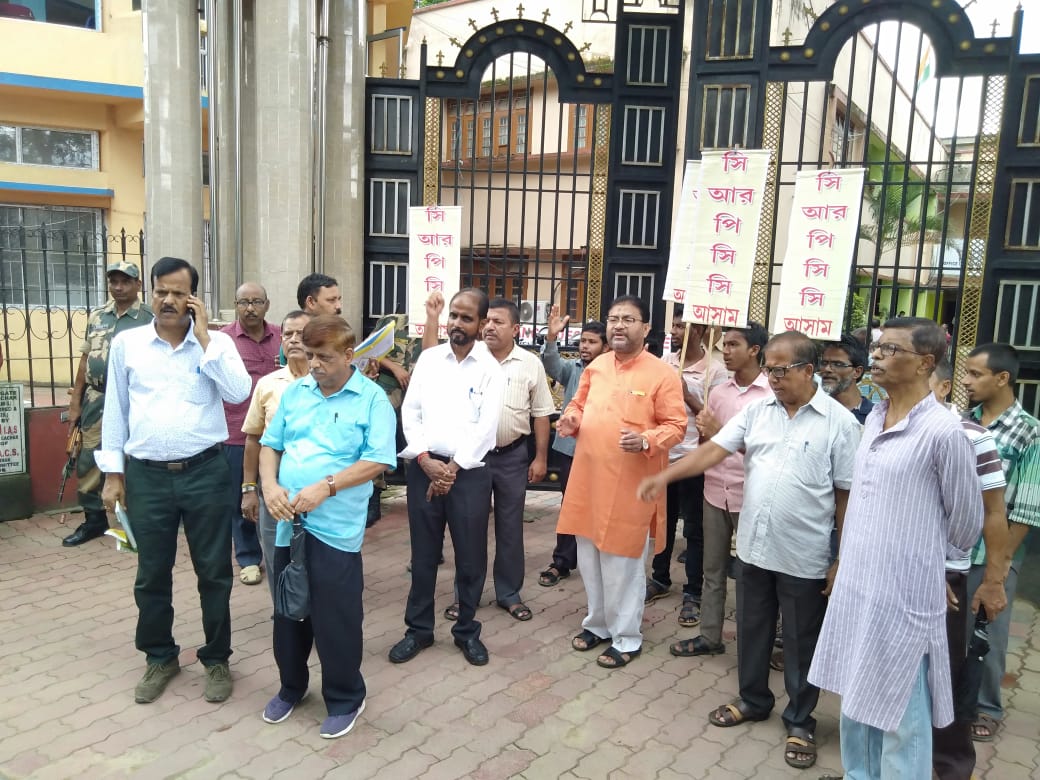 July 25: As a mark of protest against the immense hardships faced by the people during the process of hearing and other allied matters, the Citizens’ Rights’ Protection Co-Ordination Committee (CRPCC) held a protest demonstration near the office of the Deputy Commissioner, Cachar. They also handed over a Memorandum to the Magistrate A.R. Majumdar, which was addressed to Prateek Hajela, State Coordinator of National Register of Citizens (NRC).