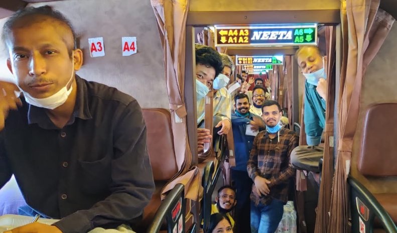 May 8: After making arrangements for the return of the stranded cancer patients in Mumbai to Assam, the state government has is now bringing back patients with different ailments from Mumbai. They have also started their journey by bus. This was informed by State Health Minister, Himanta Biswa Sarma. the minister has even shared some photographs of the people after they commenced their journey by bus from Mumbai. The smiling faces inside the bus speaks volume of their joy of coming back to their home state. However, the pictures also testify the violation of social distancing norms as the people are seen to be in close proximity to each other inside the bus.