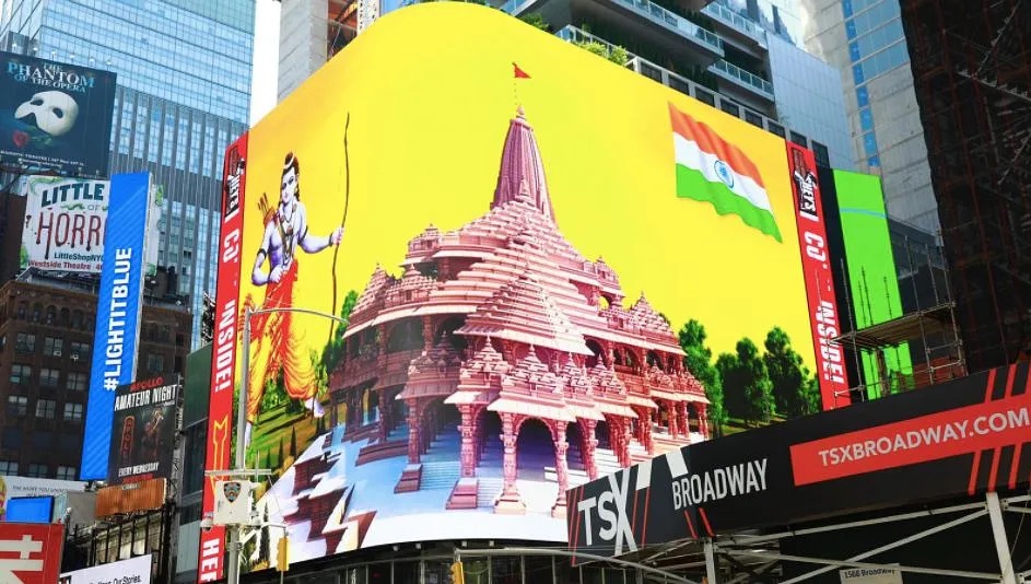 Ram Mandir goes live on digital display in New York’s Times Square amidst chants of ‘Jai Shree Ram’