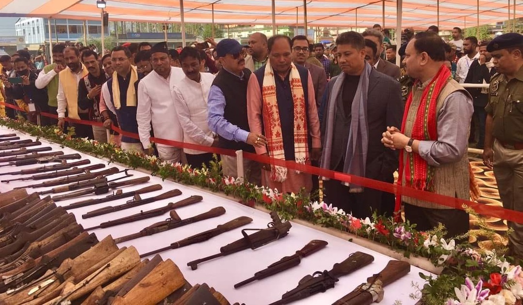 “As a testimony to this remarkable effort, a total of 1179 members, belonging to UDLF(B) & BRAU laid down their arms today in Hailakandi & returned to the mainstream! Myself along with Hon’ble ALA Speaker Shri Biswajit Daimary & other dignitaries took part at this event,” added minister Hazarika.