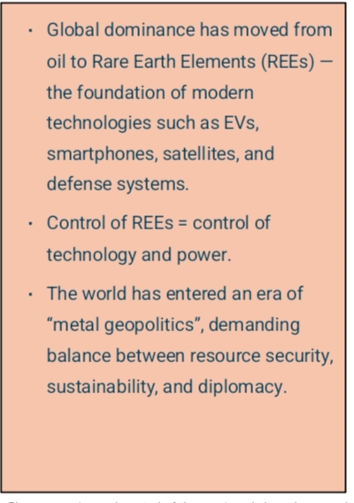 There was once a time when a nation’s wealth and power were measured by the size of its oil reserves. The Middle Eastern oil fields, for decades, dictated the contours of global economics and politics. Yet, the technology-driven civilization of the twenty-first century has fundamentally altered that paradigm. Today, oil no longer defines power; it has been replaced by Rare Earth Elements (REEs)—the indispensable raw materials behind almost every form of modern technology.