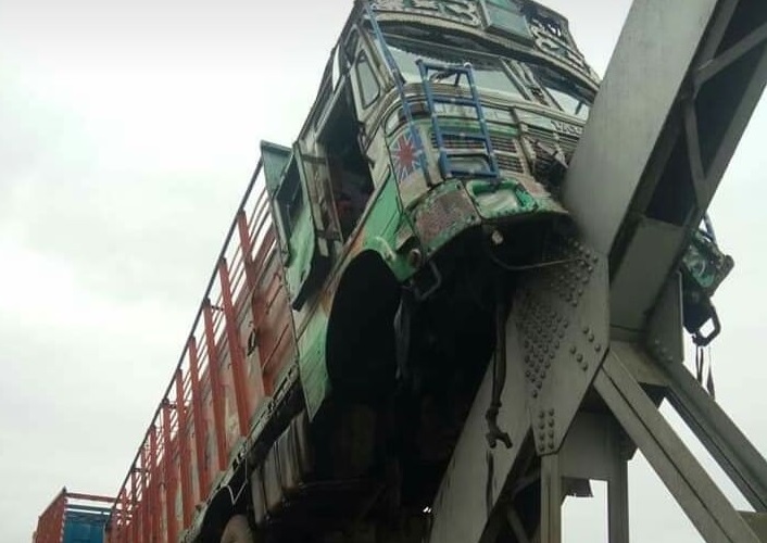 Truck loses control, rams into a bridge in Karimganj