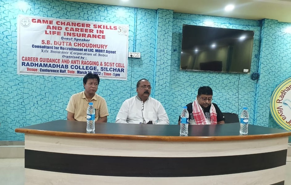March 29: A special lecture entitled “Game Changer Skills & Career in Life Insurance” was organised by the Career Guidance Cell under Internal Quality Assurance Cell (IQAC) of Radhamadhab College, Silchar on Tuesday. The Guest Speaker during the occasion was SB Dutta Choudhury (Bapi),Consultant for recruitment of LIC, MDRT Agent.