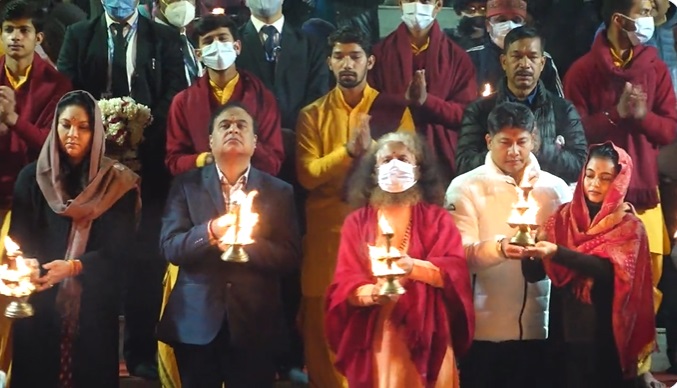 Dec. 30: Assam Chief Minister Dr Himanta Biswa Sarma on Tuesday visited the temple city of Rishikesh in Uttarakhand along with his wife. There on the banks of the Holy Ganges, the Chief Minister along with his wife was seen to perform Ganga Aarti. CM Assam was also accompanied by his cabinet colleague Pijush Hazarika. Taking to his twitter handle, Dr Sarma wrote, “Honoured to be a part of the divine Ma Ganga Arti at Parmarth Niketan, Rishikesh. Also feeling privileged to have the blessings of Pujya Swamiji, His Holiness Chidanand Saraswatiji.”